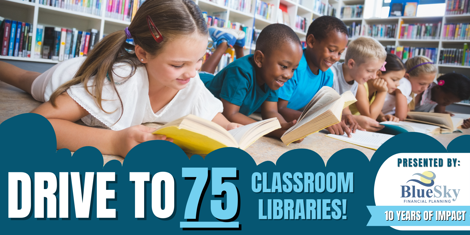If we reach our goal of raising $10,000 towards a classroom library in March, BlueSky Financial Planning will donate an additional $10,000 towards a classroom library to reach our goal of 75 libraries in the community.